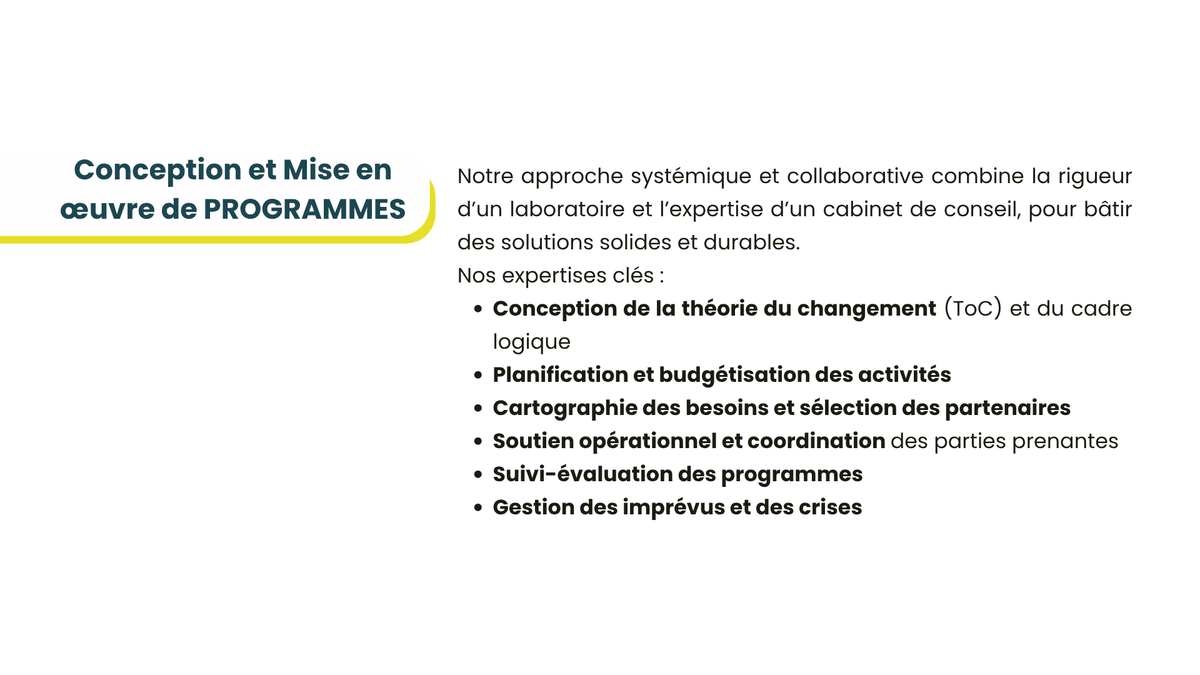 Nous vous assistons dans la conception de vos cadres politiques et de votre organisation, dans le choix des méthodes, des outils et les partenaires, et pour le déploiement de vos projets et programmes.